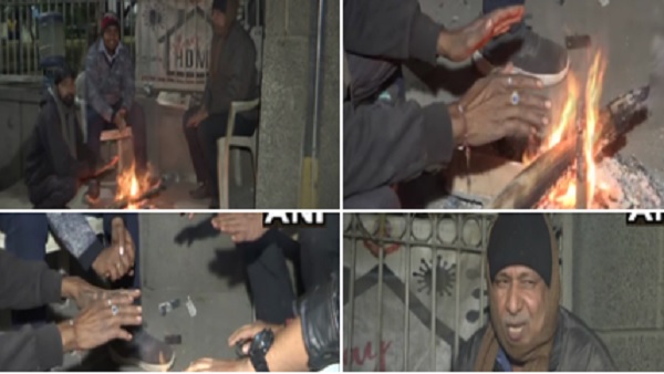 सड़क किनारे काफी लोग आग तापते नजर आए
