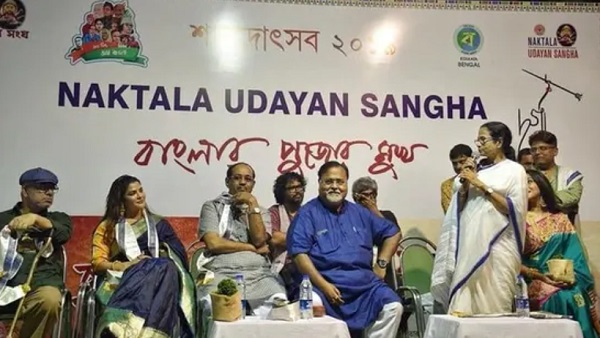 दुर्गा पूजा कार्यक्रम में बात करते दिखे सीएम ममता और अर्पिता मुखर्जी
