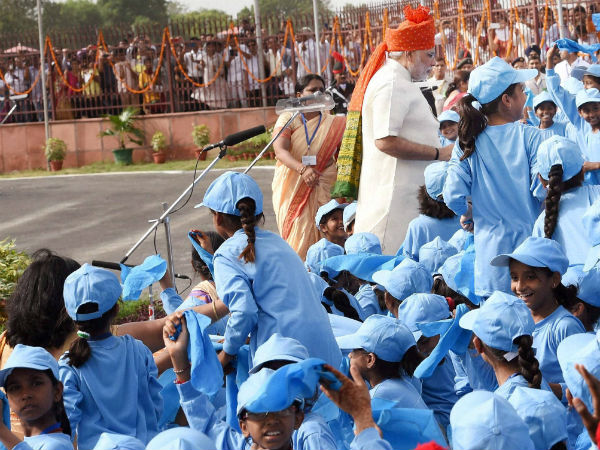 नयी दिल्ली। स्वतंत्रता दिवस के मौके पर प्रधानमंत्री नरेन्द्र मोदी ने लाल किले पर पहली बार भाषण दिया। मोदी ने इस स्वतंत्रता दिवस पर कई परंपराओं को तोड़कर इतिहास बना दिया। मोदी देश के ऐसे पहले प्रधानमंत्री बनें जिन्होंने बिना लिखा हुआ भाषण दिया तो वहीं अपना भाषण खत्म होने के बाद पीएम नरेंद्र मोदी जब अपने सरकारी आवास पर वापस लौटने के लिए कार में बैठे, तभी उनको सामने रंग-बिरंगे पोशाकों में स्कूली बच्चे दिख गए।