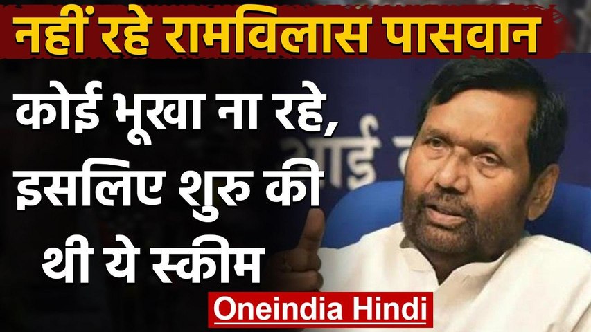 इसलिए 'वन नेशन, वन राशन कार्ड' को राष्ट्र के मानक के रूप में स्थापित किया था, हाल ही में उन्होंने कहा था कि मार्च 2021 तक देशभर में एक मानक लागू हो जाएगा, वो जब तक जीवित रहे उन्होंने इसके लिए निरंतर प्रयास भी किया, वो हमेशा कहते थे कि ये देश तभी सही मायने में खुशहाल बनेगा, जब देश का हर गरीब बच्चा पेटभर भोजन खाएगा।
