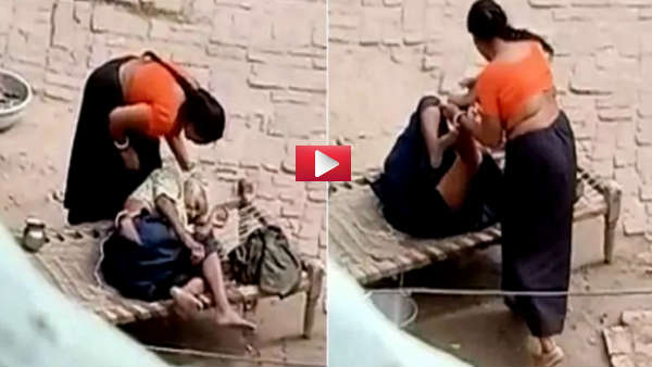 पेंशन के पैसों की लालच में बुजुर्ग महिला को चारपाई में बांध बेदर्दी से पीटती थी बहू, देखें वायरल VIDEO