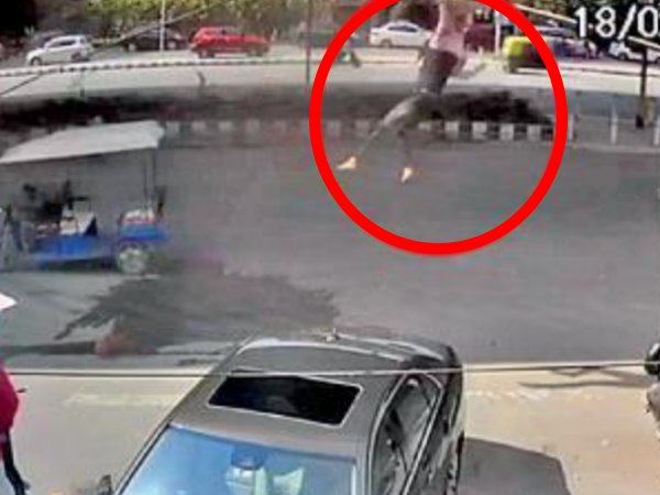 चौंकाने वाले हादसे में बाइक से उछलकर फ्लाइओवर के नीचे गिरी महिला, ऐसे बची जान