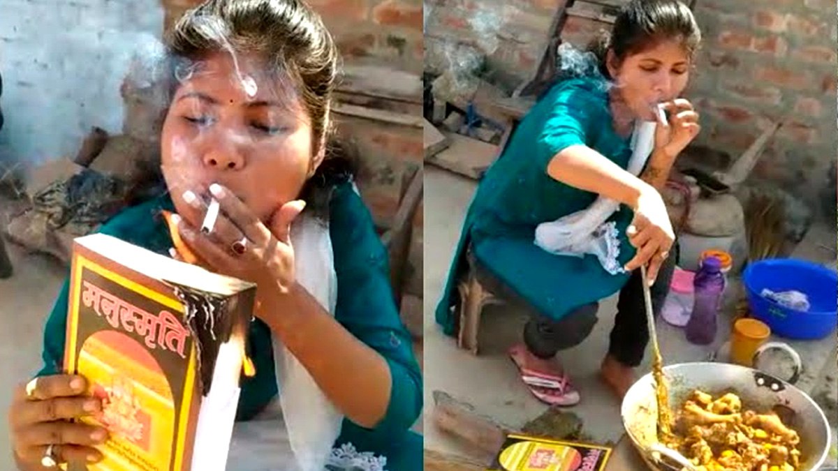 मनुस्मृति से जलाया चूल्हा, फिर सुलगाई सिगरेट, वायरल हुआ वीडियो तो महिला बोली, धूम्रपान या चिकन मत खाओ लेकिन...