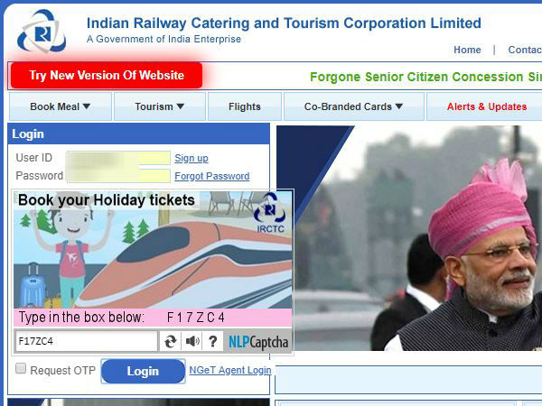 IRCTC की नई वेबसाइट