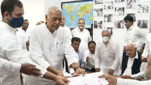 नई दिल्ली, 27 जून: राष्ट्रपति चुनाव के लिए विपक्ष के संयुक्त उम्मीदवार के तौर पर पूर्व केंद्रीय मंत्री यशवंत सिन्हा ने आज अपना नामांकन दाखिल किया। 18 जुलाई को होने वाले राष्ट्रपति चुनाव के लिए एनडीए की तरफ से द्रौपदी मुर्मू पहले ही अपना नामांकन दाखिल कर चुकी हैं। इससे पहले सोमवार सुबह तेलंगाना राष्ट्र समिति ने ऐलान किया कि राष्ट्रपति चुनाव में वो विपक्ष के उम्मीदवार यशवंत सिन्हा का समर्थन करेंगे। यशवंत सिन्हा के नामांकन में कांग्रेस सांसद राहुल गांधी और एनसीपी अध्यक्ष शरद पवार सहित विपक्ष के कई नेता शामिल हुए। पढ़िए, यशवंत सिन्हा के नामांकन से जुड़े सभी अपडेट।