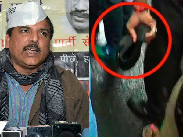 थाने में योगेंद्र से मिलने पहुंचे संजय सिंह को जूता दिखाकर भगाया गया