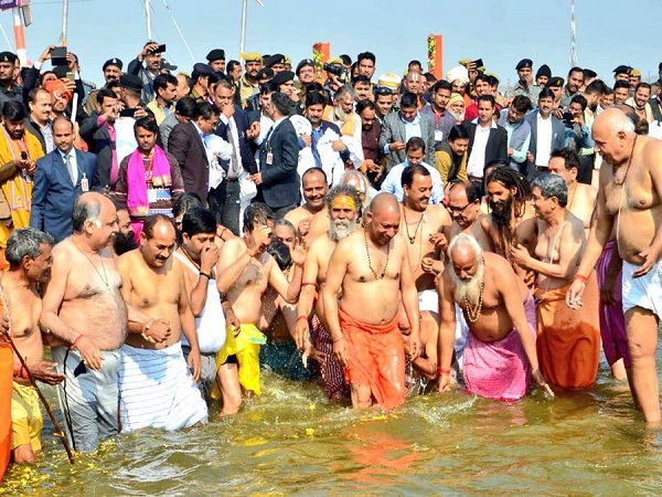प्रयागराज में सीएम योगी ने कैबिनेट मंत्रियों के साथ संगम तट पर स्थित किले में अक्षयवट का दर्शन कर पूजा अर्चना किया। सीएम योगी ने सरस्वती कूप और लेटे हुए के दर्शन भी किए। इसके बाद उन्होंने कई मंत्रियों के साथ संगम में डुबकी लगाई। इस दौरान उनके साथ अखाड़ा परिषद के अध्यक्ष नरेंद्र गिरि और अन्य साधु-संतों ने भी डुबकी लगाई।