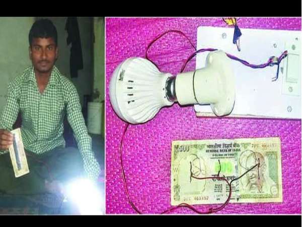 500 के पुराने नोट में लगी सिलिकन पट्टी से युवक ने जलाया बल्ब, खूब हो रही वाहवाही।