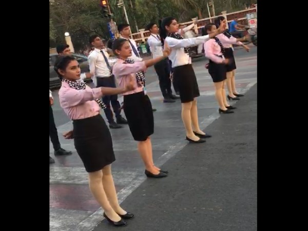 दरअसल, विमान में यात्रियों को यात्रा संबंधी दिशा-निर्देश देने वाली एयर हॉस्टेस इंदौर की सड़कों पर उतरीं और लोगों यातायात नियमों की जानकारी देती नजर आईं। इंदौर शहर के हाईकोर्ट चौराहे पर निजी एयर हॉस्टेस ट्रैनिंग इंस्टिट्यूट संस्थान के 70 स्टूडेंटस में अनोखे तरीके से वाहन चालकों को ट्रैफिक नियमों के प्रति जागरुक किया। जिस तरह से एयर हॉस्टेस विमान में यात्रियों को निर्देश देती है। कुछ ऐसे ही निर्देश सड़कों पर स्टूडेंट देते नजर आए।