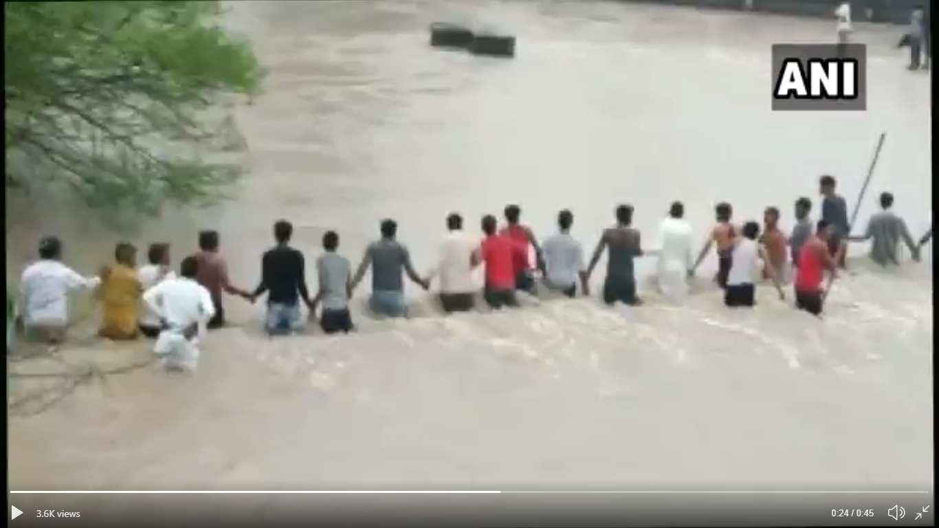 Indore : पानी में बहे 2 लोगों को बचाने के लिए हाथ से हाथ पकड़कर पानी उतरे दर्जनों लोग, Video