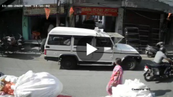पुलिस की गाड़ी से बाइक की टक्कर का वीडियो वायरल
