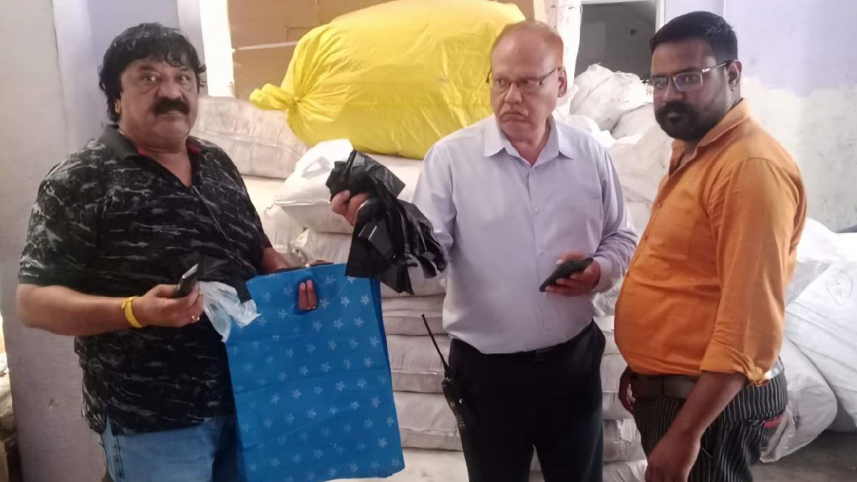 इंदौर में आयुक्त शिवम वर्मा द्वारा शहर को सिंगल यूज प्लास्टिक एवं अमानक प्रतिबंधित प्लास्टिक केरीबेग से मुक्त बनाने के उदेश्य से समस्त स्वास्थ्य अधिकारी व सीएसआई को चालानी कार्यवाही करने के निर्देश के क्रम में स्वास्थ्य कन्ट्रोल प्रभारी अनिल सिरसिया के निर्देशन में झोन क्रमांक 13 में महुरानी लोजिस्टीक्स 184/4 ट्रांसपोर्ट नगर में 30 कि.ग्राम के 100 कटटे पॉलिथिन एवं प्लास्टिक चम्मच के 5 कार्टुन जब्त कर रूपये 1 लाख की चालानी कार्यवाही की गई।