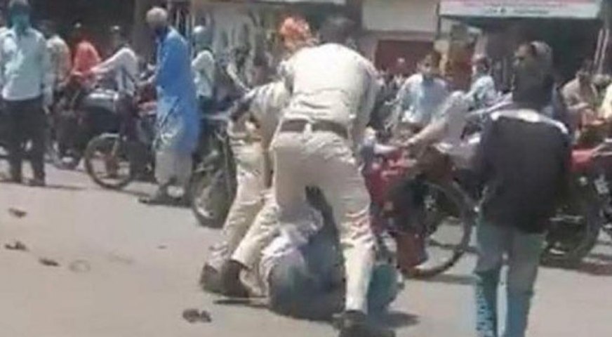 जानकारी के मुताबिक, इंदौर शहर में मंगलवार को चेकिंग अभियान चल रहा था। परदेशीपुरा क्षेत्र में 35 वर्षीय एक शख्स बिना मास्क पहने दिखाई दिया। दो पुलिसकर्मियों ने उसे उसे रोक लिया। अचानक पुलिसकर्मी उस शख्स को पीटने लगे। दोनों पुलिसकर्मियों ने शख्स को सड़क पर गिरा दिया और जमकर पिटाई करने लगे। इस दौरान वहां मौजूद लोगों ने घटना का वीडियो बनाकर सोशल मीडिया पर वायरल कर दिया। वीडियो में दो पुलिस कर्मी एक शख्स को बुरी तरह पीटते दिखाई दे रहे हैं, जबकि उसका बेटा और कुछ महिलाएं पुलिसकर्मियों से रहम की भीख मांगती नजर आ रही हैं।