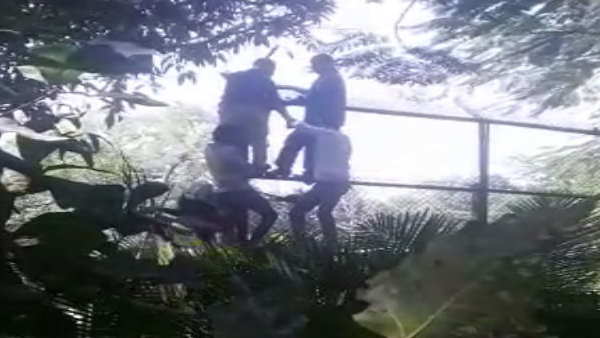 कर्मचारियों ने जाली पर चढ़ते हुए देखा