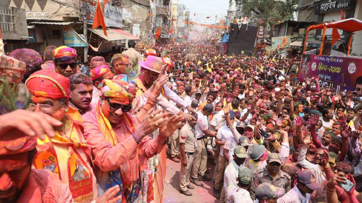 रंग पंचमी की रंगारंग गेर अलग-अलग मार्गों से निकलते हुए शहर की हृदय स्थली राजवाड़ा पहुंची, जहां बड़ी संख्या में लोग गेर का हिस्सा बनने पहुंचे थे। इंदौर आए CM डॉ. मोहन यादव को कैबिनेट मंत्री कैलाश विजयवर्गीय और जनप्रतिनिधियों ने रंग लगाकर रंग पंचमी की शुभकामनाएं दी।