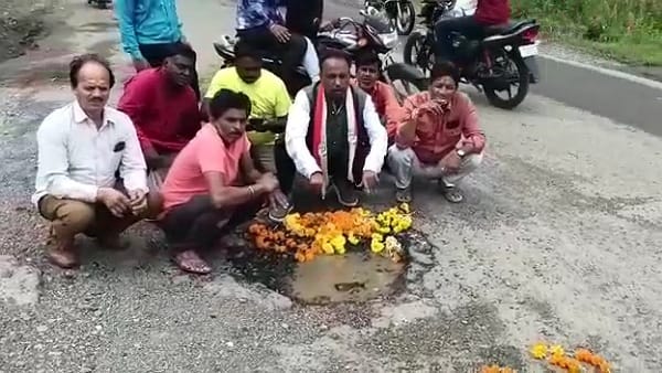 MP के इस शहर में सड़क के गड्ढों को दी गई श्रद्धांजलि, कुछ ऐसा है पूरा मामला