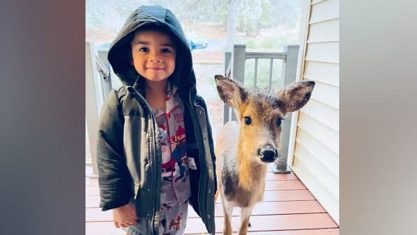 चार साल का बच्चा हिरन के बच्चे के साथ लौटा घर, दोनों को साथ देख मां हुई हैरान, तस्वीर वायरल