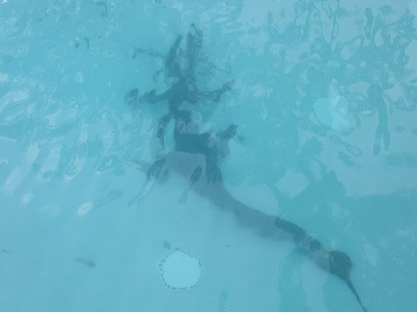 फायरफाइटर्स ने आते ही मगरमच्छ को रेस्क्यू का काम शुरू किया। मगरमच्छ पूरे 6 फुट का था। फायकफाइटर्स ने कुछ ही मिनटों में मगरमच्छ को पूल से बाहर निकाल लिया और फिर टेप से उसका मुंह बांधा गया। इस मगरमच्छ की फोटो ऑरेंज काउंटी फायर रेस्कयू ऑफिस ने शेयर की है। तस्वीरों में आप देख सकते हैं कि कैसे मगरमच्छ मजे से पूल में तैर रहा है।
