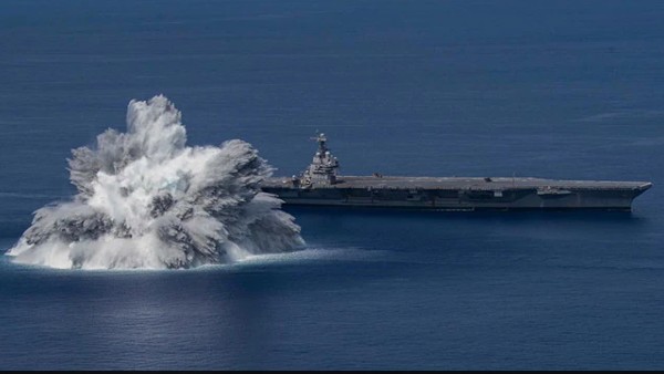 अमेरिकी मीडिया के मुताबिक नौसेना नए एयरक्रॉफ्ट करियर की टेस्टिंग कर रही है। युद्ध के हालात में कई बार बड़े बम पोत के आसपास गिरते हैं। ऐसे में उसकी क्षमता का आंकलन करने के लिए अमेरिका ने खुद अपने नए एयरक्रॉफ्ट कैरियर के पास 40,000 पाउंड (18,144 किलोग्राम) का विस्फोट किया। जिस वजह से समुद्र का बड़ा हिस्सा धर्रा उठा और पानी हवा में काफी ऊपर तक उछला। इस पूरे घटना की एक दूसरे जहाज से रिकॉर्डिंग की गई।