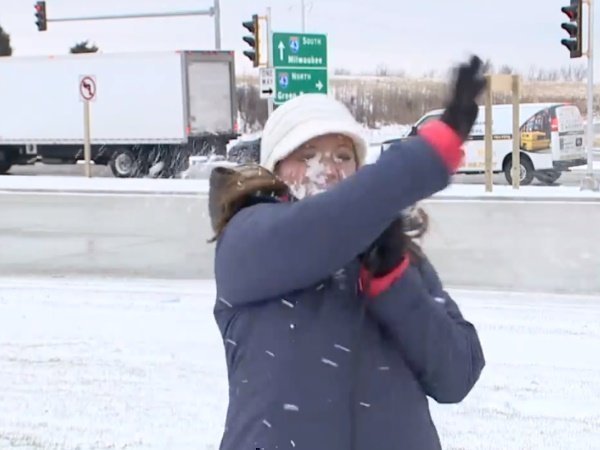 अमेरिका में हुई बर्फबारी की जानकारी दे रही एक रिपोर्टर के साथ एक घटना घटी। FOX6 News Milwaukee की रिपोर्टर एमी डुपॉन्ट विसकोनसिन शहर के मौसम की रिपोर्टिंग कर रहीं थीं। वो लाइव जाने ही वालीं थी कि फोटोजर्नलिस्ट ने उनकी तरफ एक बड़ा सा बर्फ का गोला फेंक दिया।