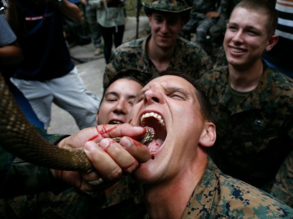 मिलिट्री की ट्रेनिंग कितनी मुश्किल है ये तो हर कोई जानता है। जवानों को मुश्किल से मुश्किल हालातों में रहना सिखाया जाता है। कैसे कम से कम संसाधन पर जीवित रहा जाए, इसकी ट्रेनिंग भी जवानों को दी जाती है। अमेरिकी मरीन्स को तो ट्रेनिंग के दौरान उन्हें कोबरा का खून पिलाया जाता है।