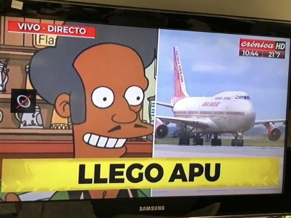 पीएम मोदी का प्लेन जब ब्यूनस आयर्स पहुंचा तो क्रोनिका टीवी ने उनके आने पर एक ग्राफिक चलाया जिस पर स्पेनिश भाषा में लिखा था, 'लिएगो अप्पू'। इसका इंग्लिश में मलतब होता है, 'अप्पू अराइव्स।' बैकग्राउंड में स्लमडॉग मिलेनियर का गाना रिंग रिंग रिंगा प्ले हो रहा था। इस चैनल को अब लोग नस्लवाद को बढ़ावा देने वाला बता रहे हैं।