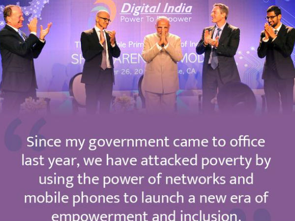 पीएम मोदी ने कहा कि अब वक्त ई गवर्नेस का नहीं बल्कि मोबाइल गवर्नेस का है, हमारे सरकार की कोशिश है कि देश का हर नागरिक डिजिटलीकरण का लाभ उठाये। मोदी ने कहा हम अपनी सवा सौ करोड़ की जनता को डिजटल रूप से जोड़ना चाहते हैं। सरकार वाई-फाई हॉटस्पॉट्स का विस्तार कर रही है।