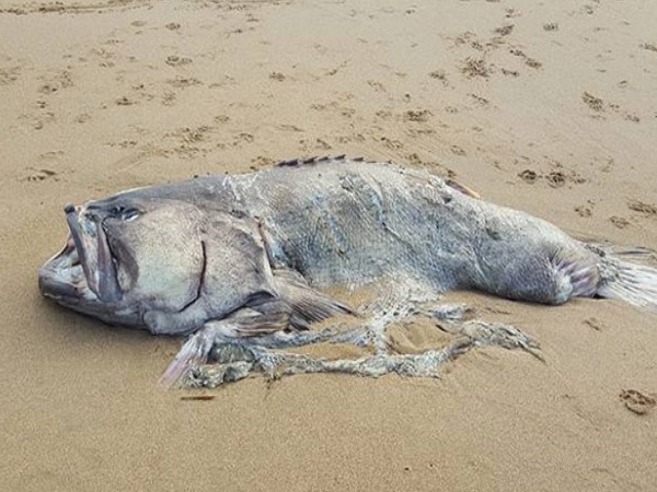 समुद्र किनारे बहकर आ गई 5 फीट लंबी और 150 किलो वजन की यह मछली, सब देखते रह गए