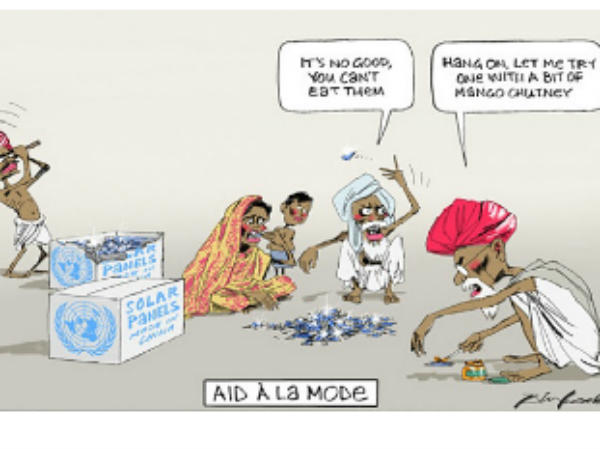 कार्टून से यह जाहिर होता है कि एक दुर्बल भारतीय परिवार सोलर पैनल तोड़ रहा है और एक व्यक्ति इसे आम की चटनी के साथ खाने की कोशिश कर रहा है।पेरिस सम्मेलन में भारत ने अंतरराष्ट्रीय सौर गठबंधन पहल का भी विचार दिया था। इसकी शुरुआत भी सम्मेलन के दौरान हो गई।