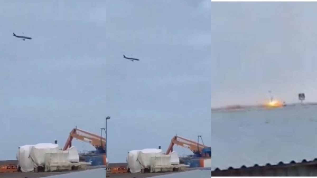 भयावह दृश्य, धुएं और आग की लपटों में घिरा विमान