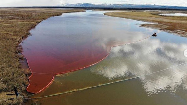 20,000 लीटर डीजल लीक होने से खून सी लाल हुई रूस की नदी, देखिए तस्वीरें