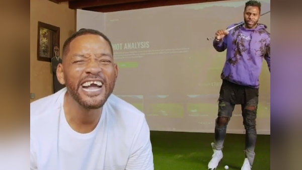 दरअसल, वायरल वीडियो में देखा जा सकता है कि एक्टर विल स्मिथ और सिंगर जेसन डेरुलो एक कमरे में गोल्फ खेलने की प्रैक्टिस कर रहे हैं। जेसन डेरुलो जैसे ही गेंद को मारने के लिए गोल्फ स्टिक को उठाते हैं उसी समय पीछे से स्मिथ उसकी चपेट में आ जाते हैं। वीडियो में देखने पर लगता है कि गोल्फ स्टिक विल स्मिथ के मुंह पर लगता है। इसके बाद स्मिथ दर्द से कराहते हुए वीडियो में अपने टूटे हुए दातों को दिखाते हैं।