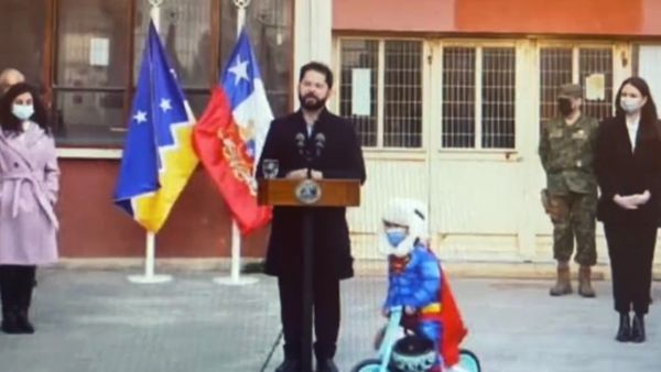 सैंटियागो, 07 सितंबरः चिली के राष्ट्रपति गेब्रियल बोरिक के भाषण के दौरान एक बच्चे के साइकिल चलाने का मजेदार वीडियो दूनिया भर में वायरल हो रहा है। वीडियो में दिख रहा है कि बच्चा सुपरमैन के ड्रेस में साइकिल से राष्ट्रपति के पास पहुंच जाता है। जोश में बोरिक भाषण देते हैं, वो उतने ही जोश में उनके आगे पीछे साइकिल घुमाता है।