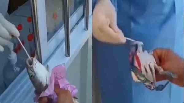 साउथ-चाइना मॉर्निंग पोस्ट ने अपने ट्विटर हैंडल पर चीन की सोशल मीडिय पर चल रहे वीडियो का एक ओवरऑल वीडियो शेयर किया है, जिसमें स्वास्थ्य कर्मी ऐसे सीफूड्स के कोरोना सैंपल ले रहे हैं, जिसे कोविड वायरस से संक्रमित होने की आशंका है। स्वास्थ्य कर्मी पूरी तरह पीपीई किट में हैं और मछलियों के मुंह से उसी तरह स्वैब ले रहे हैं, जैसे कि इंसान का लेते हैं। जबकि केकड़ों के शेल के ऊपर से सैंपल जुटाए जा रहे हैं। यह वीडियो पूरे चीन में वायरल हो चुके हैं और इसपर बहुत बड़ी बहस भी छिड़ चुकी है।