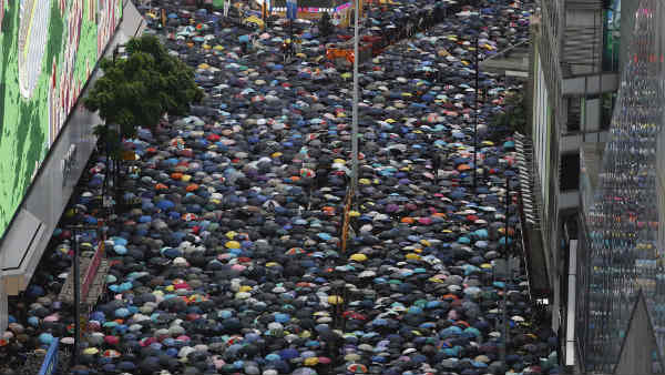 हांगकांग में जोरदार बारिश के बाद भी प्रदर्शनकारी छाता लिए हुए विरोध में शामिल थे। प्रदर्शनकारियों को पुलिस की ओर से चेतावनी भी दी गई थी लेकिन इसका भी कोई असर उन पर नहीं हुआ। हांगकांग के मशहूर विक्टोरिया पार्क में एक लाख से ज्यादा लोकतंत्र समर्थक प्रदर्शनकारी इकट्ठा होकर सरकार के खिलाफ प्रदर्शन कर रहे हैं। इसे हांगकांग का अब तक का सबसे बड़ा विरोध प्रदर्शन माना जा रहा है। चीन ने प्रदर्शन के बाद बॉर्डर पर सैन्य गतिविधियां तेज कर दी है। अमेरिकी राष्ट्रपति डोनाल्ड ट्रंप ने चीनी सेना की गतिविधियों पर कड़ी आपत्ति दर्ज कराई है। ट्रंप ने चीन को धमकी दी कि अगर प्रदर्शनकारियों पर तियानमेन स्क्वायर जैसी कार्रवाई हुई तो दोनों देशों के व्यापार वार्ता को बड़ा नुकसान होगा।