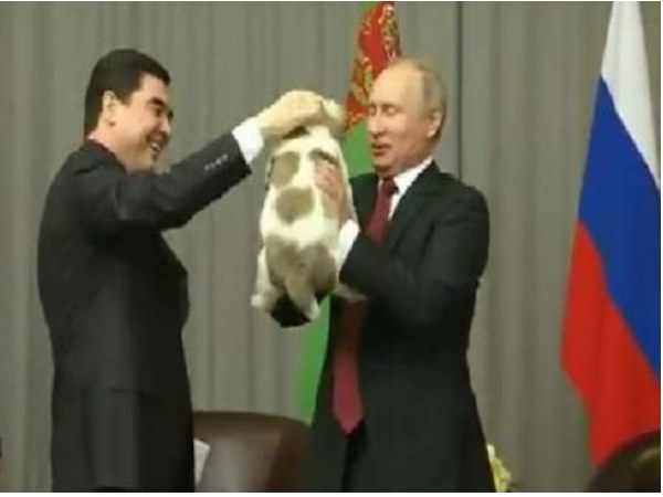 सोची में तुर्कमेनिस्तान के राष्ट्रपति ने रूस के राष्ट्रपति से मुलाकात की उस दौरान वे अपने साथ एक पिंजरे में प्यारा से डॉग लेकर आये। डॉग के पिंजरे से बाहर निकालते ही तुर्कमेनिस्तान के राष्ट्रपति गुर्बांगुली से अपने एक हाथ में उठाया, उसके बाद पुतिन ने उसे अपनी गौद में उठाते हुए शुक्रिया अदा किया।