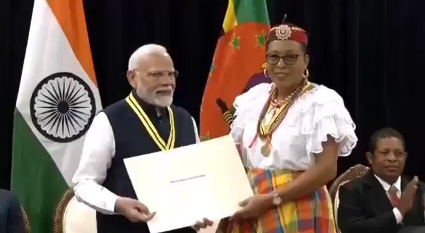 प्रधानमंत्री नरेंद्र मोदी को डोमिनिका ने सर्वोच्च सम्मान से किया सम्मानित