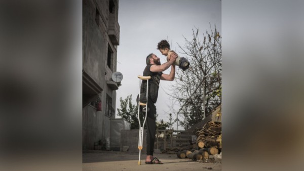 बिना अंगों के पैदा हुए बेटे को थामे एक पैर वाले पिता की फोटो ने जीता प्रथम पुरस्कार