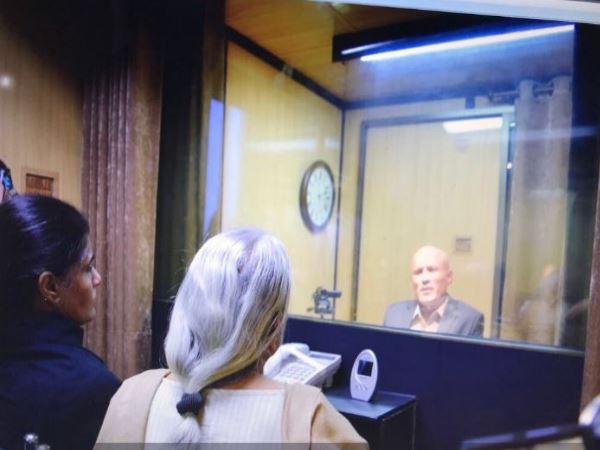इन तस्वीरों से स्पष्ट लग रहा है कि कुलभूषण जाधव और उनकी मां व पत्नी एक दूसरे को देख सकते हैं, बात भी सकते हैं, लेकिन एक-दूसरे को छू नहीं सकते हैं। कुलभूषण जाधव ने ब्लू कलर का ब्लेजर पहना हुआ है और एक बंद कमरे में अकेले बैठे हैं।