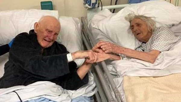 Final Picture of Couple Married Over 70 Years: लंदन। कोरोना महामारी के चलते अब तक लाखों लोग अपनों को खो चुके हैं। बीमारी के चलते न जाने कितने लोग अस्पताल में भर्ती हुए तो दोबारा अपने परिवार से मिल ही न सके। इस दौरान ब्रिटेन से कोरोना का शिकार हुए एक बुजुर्ग दंपती की दिल झकझोर करने वाली तस्वीर सामने आई है। ये तस्वीर 91 साल के दो बुजुर्ग दंपती की है जिनकी कोविड-19 के चलते मौत हो गई लेकिन मौत के वक्त दोनों साथ रहे और हाथ में हाथ पकड़े रहे।