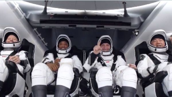 एलन मस्क की कंपनी स्पेस एक्स का विमान चार अंतरिक्ष यात्रियों को स्पेस से लेकर धरती पर लौट आया है।