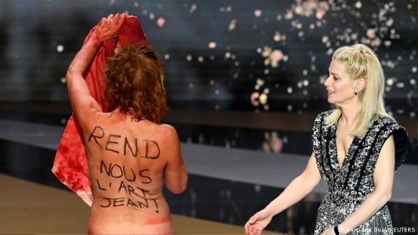 FRANCE: ऑस्कर स्टेज पर अचानक न्यूड हो गईं फ्रेंच एक्ट्रेस, सरकार के खिलाफ करने लगीं नारेबाजी