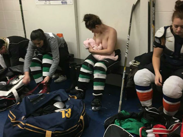 एल्बर्टा। स्तनपान किसी भी महिला के जीवन का काफी अहम हिस्सा होता है, जिसे बेहद ही साधारण तौर पर महिला और उसके नवजात के बीच एक सामान्य प्रक्रिया के रूप में देखना चाहिए। लेकिन सार्वजनिक जगहों पर मां का उसके बच्चे को स्तनपान कराना आज भी लोगों के लिए सहज नहीं है, ऐसी स्थिति को लोग देखकर असहज हो जाते हैं। लेकिन इस असहजता को खत्म करने के लिए कनाडा की हॉकी खिलाड़ी ने एक बड़ा कदम उठाया। इस महिला हॉकी खिलाड़ी ना सिर्फ मैच के बीच में अपने बच्चे को ड्रेसिंग रूम में स्तनपान कराया बल्कि उसकी तस्वीर को भी सोशल मीडिया साझा किया है।