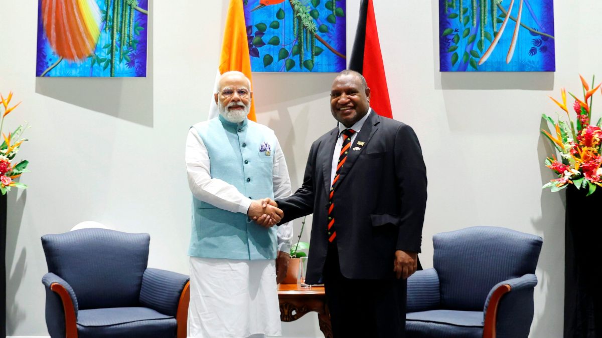 वहीं, पापुआ न्यू गिनी के प्रधानमंत्री जेम्स मारापे ने सोमवार को प्रधानमंत्री नरेंद्र मोदी से कहा, कि प्रशांत द्वीप समूह के देश भारतीय प्रधानमंत्री को ग्लोबल साउथ का नेता मानते हैं और अंतरराष्ट्रीय मंचों पर भारत के नेतृत्व का समर्थन करेंगे।