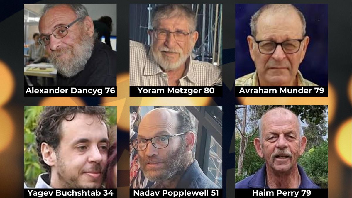 हमास के कैद में मारे गये इन इजराइली बंधकों की पहचान इजराइली सेना ने चैम पेरी (80), योरम मेट्जगर (80), अब्राहम मुंडर (79), अलेक्जेंडर डैनसीग (76), नादव पोपलवेल (51) और यागेव बुचश्टाव (35) के रूप में की है।