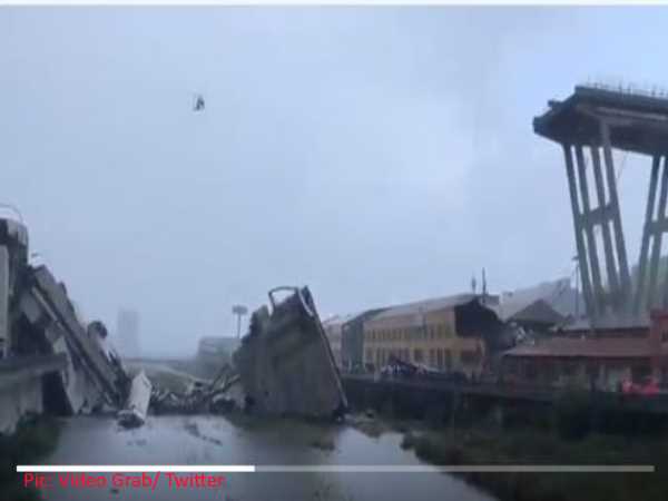 रोम। इटली के जेनोआ शहर में एक ब्रिज गिरने से कम से कम 11 लोगों की मौत हुई है। जेनोआ शहर में तेज तूफान के दौरान यह हादसा हुआ है। फायरफाइटर्स ने कहा कि इटली और फ्रांस के बीच मुख्य राजमार्ग पर A10 पर ब्रिज गिर गया,जिसके नीचे कई कारें और ट्रक दब गए हैं। इटली मीडिया के मुताबिक, ब्रिज का करीब 200 मीटर बड़ा हिस्सा गिरकर सड़क पर गिर गया है। इस ब्रिज के नीचे करीब 20 वाहन दब गए हैं और दो लोगों सुरक्षित भी निकाला गया है।