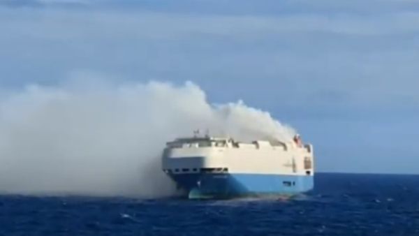 विशालकाय समुद्री जहाज में लगी भीषण आग, चार हजार से ज्यादा पोर्श कारें जलकर खाक, भारी नुकसान
