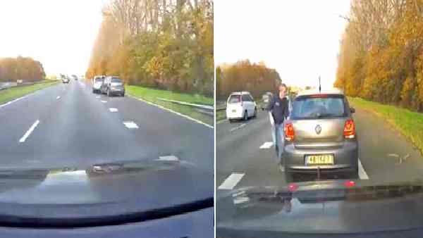 डैशकॉम लिया गया यह वीडियो नीदरलैंड की एक हाइवे का है। मीडिया रिपोर्ट के मुताबिक एक शख्स हाइवे पर ड्राइव कर रहा था। तभी उसकी नजर एक कार पर पड़ी जो बेकाबू नजर आ रही थी। देखते ही देखते वह गाड़ी सड़क छोड़कर किनारे की घास पर फर्राटा दौड़ने लगी। उसे यह समझते देर नहीं लगी कि उस कार की ड्राइवर के साथ कोई दिक्कत है। एक जगह पर वह कार सड़क किनारे लगे बंपर से भी सटती दिखी, लेकिन फिर से सड़क पर आ गई। इस दौरान दूसरी कार के ड्राइवर को पक्का यकीन हो गया था कि ड्राइविंग सीट पर बैठी महिला बेहोश है और उसका अपनी कार पर कंट्रोल नहीं है। फिर दूसरी कार वाले ड्राइवर ने महिला की कार को रोकने के लिए उसके आगे जाकर अपनी गाड़ी की स्पीड कम की और ठीक उसके आगे ही अपनी कार में ब्रेक लगा दी। इसके चलते महिला की कार ने उसकी कार को पीछे से टक्कर मार दी, लेकिन वह भी रुक गई।
