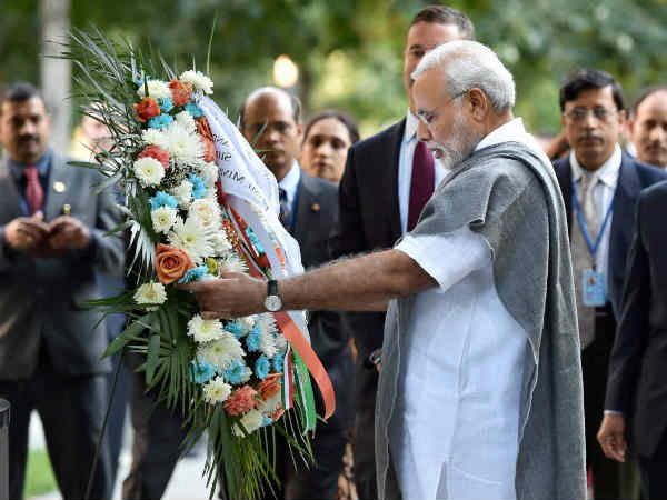 9/11 स्मारक पहुंच नरेंद्र मोदी ने दी शहीदों को श्रद्धांजलि