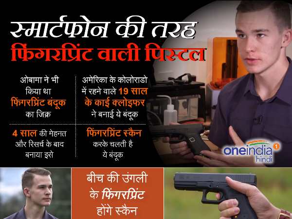 अमेरिका के कोलोराडो में रहने वाले काई क्लोइफर (Kai Kloepfer) ने महज 19 साल की उम्र में ही ऐसी बंदूक बनाने में सफलता हासिल कर ली है, जो आपके फिंगरप्रिंट स्कैन करके अनलॉक होगी।